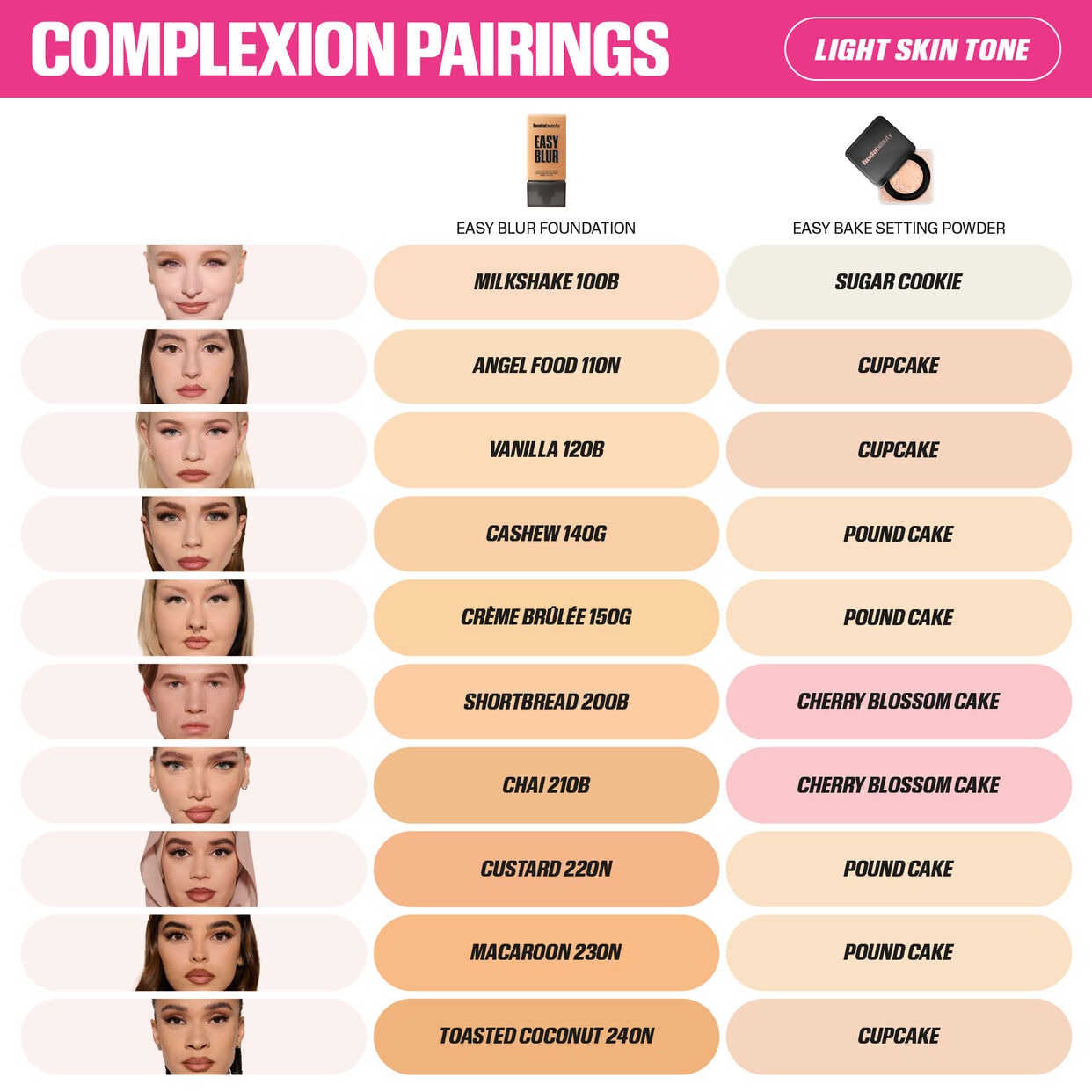 The Huda Beauty Easy Bake Loose Powders are inspired by Huda’s strong belief that the technique of baking is a key step to a flawless finish while ensuring long-lasting, melt-proof makeup. This extremely light and silky texture blends seamlessly into the skin leaving it matte with a hint of sheen, for a luminous finish that controls shine throughout the day. The powders work to subtly color correct and highlight different contours of the face, leaving a translucent veil of color on your skin.